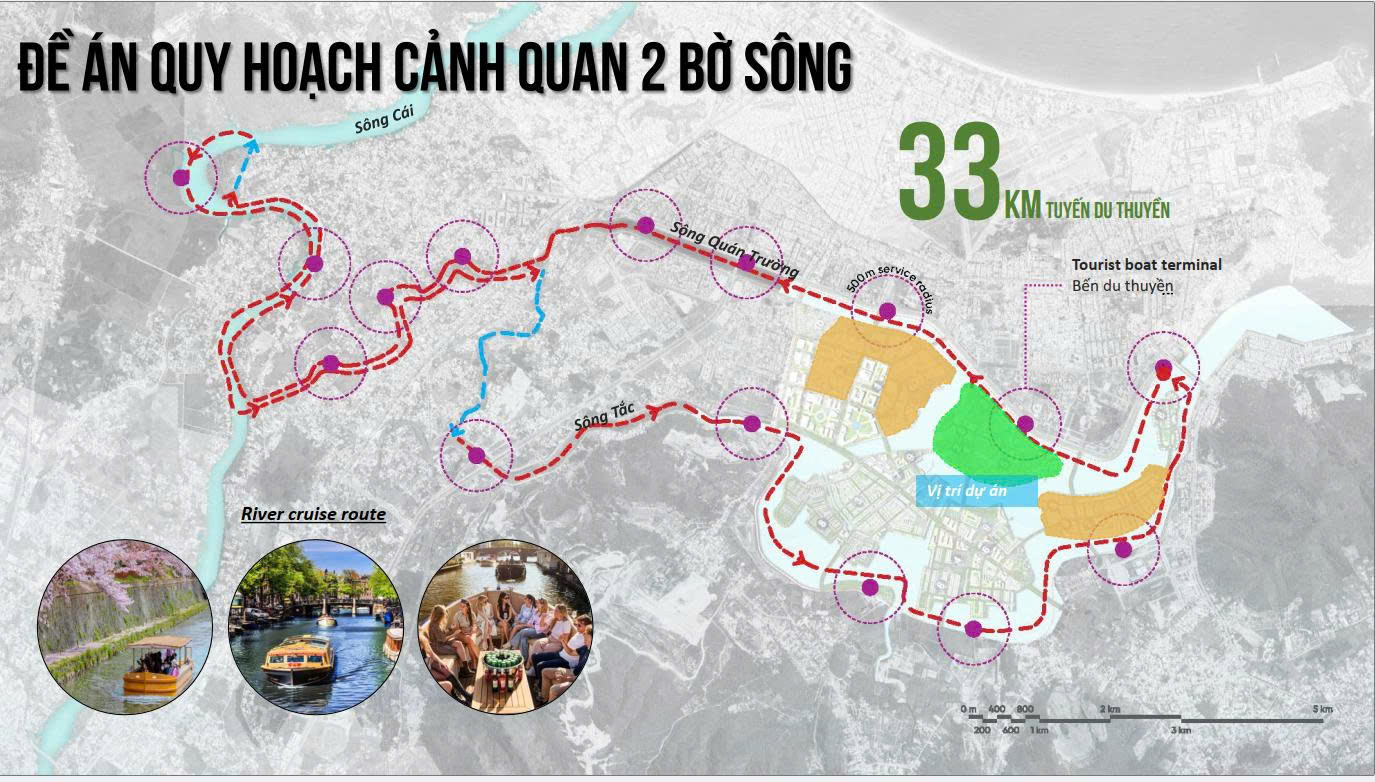 Tổng thể dự án được định hướng trở thành trung tâm giải trí, thương mại, kinh tế đêm lớn bậc nhất Nam Trung Bộ. Cùng với việc áp dụng mô hình Sponge City – thành phố bọt biển, giải pháp quy hoạch tiên tiến trên thế giới do kiến trúc sư cảnh quan lừng danh Kongjian Yu khởi xướng, khu đô thị mang đến hệ tiện ích và cảnh quan độc đáo chưa từng có với hơn 60ha mặt nước và các điểm nhấn như quảng trường trung tâm 5,2ha, show nghệ thuật trên hồ nước 7ha, bến du thuyền và hệ thống công viên ven sông trải dài toàn khu.